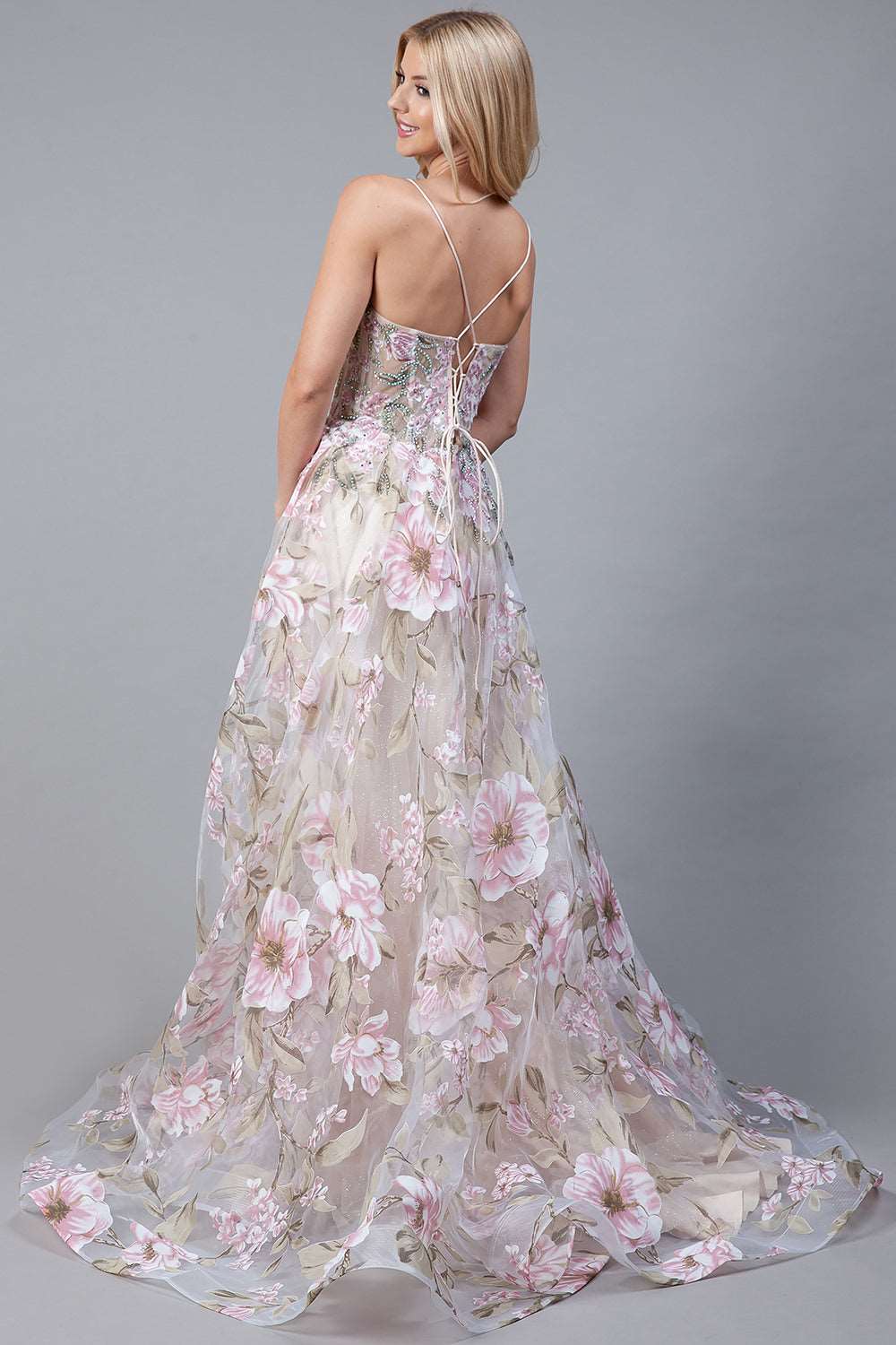 Expertly crafted with a sheer bodice and organza fabric, this A-line prom gown is both elegant and alluring. With a leg slit to show off your legs and an open lace-up corset back for a perfect fit, this gown is the ultimate choice for a memorable prom night.