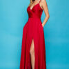 Strapless A-Line Organza Print Prom Gown with Boned Corset Bodice Leg Slit & Open Corset Back. Available in Rust and Blue. Sizes 2-16 Updated: 9-28