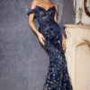 AC BZ029S Long sleeve velvet mini dress with all-over sequins. Features a mini plunge neckline and zipper back. Available in Royal and Black Sizes: 0-14 Updated: 9-29