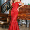 AD 3084 – Fit & Flare Lace Embellished Prom Gown With Sheer Boned Bodice & Open Strappy Back