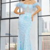 A-Line Lace Embellished Prom Gown with Sheer Bodice and Open Back. Available in Baby Blue and Nude Sizes XS-2XL. Updated: 10-5.
