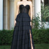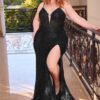 A unique prom gown with a feather accent on the shoulder straps and deep V-neckline, offering a flattering silhouette for a stunning look. Available in Black, Gold, Lilac, Red, and Sky Blue sizes XS-2XL, updated as of October 5.