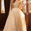 A prom gown with allover glitter prints, an off-the-shoulder fit and flare silhouette, a sheer bodice, open lace up back, and a hidden leg slit. Available in Black, Dark Emerald, Red, and Silver sizes XS-3XL. Updated: 10-4.