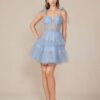 Experience elegance and glamour with our AD 3218 A-Line Prom Gown. Featuring a stunning sequin embellished layered ruffle design, a sheer boned bodice, and a lace up corset back for a perfect fit. Complete with a leg slit for a touch of playfulness. Perfect for making a statement at any formal event.