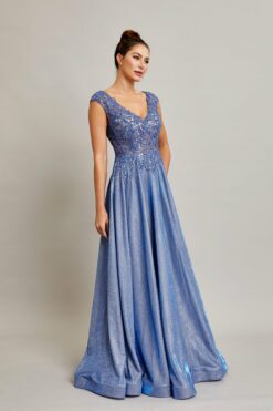 Enhance your beauty with BC RD2371 prom gown. Made from stretch sparkle crepe, this A-line gown features a delicate sequin embellished sheer v-neck bodice and cap sleeves. The perfect combination of comfort and style, guaranteed to make you shine on your special night.