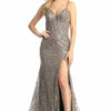 Elegant tulle prom gown with intricate lace appliqué and crystal details, perfect for formal occasions. The A-line cut flatters all body types, offering comfort and a luxurious look. Available in Navy, Size 6-12 Updated: 11-5