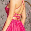 A stunning Floral Sequin Fit & Flare Gown with Sheer Boned Bodice and a Sheer Skirt, both adorned with intricate floral sequin designs. The lace up back adds a touch of elegance and ensures a perfect fit.