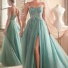A mermaid-style prom gown featuring dimensional floral appliques, a sheer boned V-neck corset bodice, an open lace-up back, and layered ruffle skirt. Available in Black/Nude, Blue, Emerald, Fuchsia, Gold Mist, Lavender, Mauve, Red, Sage and Silver/Nude sizes.