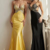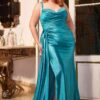 Elevate your prom night with our CD CD252C Plus Size Shimmering A-Line Prom Gown. This glamorous gown features a boned bodice for a secure fit, cowl neck for a chic touch, and an open corset back for a dramatic look. The leg slit adds a touch of allure, making you the star of the night. Available in Black, Champagne-Gold, Emerald, Royal Blue, Red and Smoky Blue Sizes: 18-24 Updated: 11-5