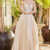 A stunning prom gown featuring a stretch satin bodice with sheer boned beaded lace and a high leg slit, complete with a side sash. Available in Black, Emerald, Mocha Gold, Navy, Silver, and Burgundy sizes 4-22. Updated: 11.