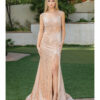 Expertly crafted, the CD CD831 prom gown combines lace and stretch satin for a flattering fit and flare silhouette. The sheer lace embellished bodice adds a touch of sophistication, while the high leg slit allows for effortless movement. Make a statement at your prom with this stunning dress. Available in Black Sizes 2-16 Updated: 3-19