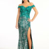 A column beaded gown with a plunging illusion design, featuring a V-neck and sheer underarm panels. Available in lilac, light blue, and rose. Sizes: 4-8. Updated: 7-31.
