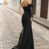 A strapless lace bodice with a figure-flattering fit and flare silhouette, featuring a sheer corset bodice for a touch of allure. The stretch satin material allows for comfortable movement, while a leg slit adds a playful touch. Perfect for prom or special occasions. Available in Black, Dusty Blue, Magenta, and Nova Purple sizes 2-16. Updated: 1-16
