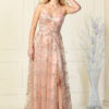 Fitted Sequin Off the Shoulder Formal Gown with Cowl Neck Ruched Waist and Asymmetrical Leg Slit