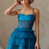 Make a statement at prom with our CD CR872 gown. Designed with a sequin patterned fit and flare silhouette, this dress features a sheer boned lace detailed corset bodice and a lace up key-hole back. Be the center of attention while feeling confident and elegant. Available in Fuchsia Sizes 2-10 Updated: 2-9