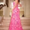 Strapless Glitter Print Fit & Flare Prom Gown with a Sweetheart Neck Sheer Underarm Panels & Removable Sleeves