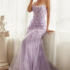 “Get ready to turn heads in this statement dress. Featuring a one shoulder design, a fitted bodice with sheer boning, and a glitter print that adds a touch of glamour. The layered tulle overskirt and leg slit enhance your silhouette, making this fit and flare dress perfect for any special occasion.” Available in Dusty Lavender, Dusty Mauve, Emerald, Lapis Blue, Magenta and Royal Sizes 2-16 Updated: 1-16
