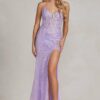 DQ 4355 A-Line 3D Butterfly Bodice Prom Gown with Strappy Lace Up Back. Available in Lilac. Sizes: XS-3XL Updated: 5-10
