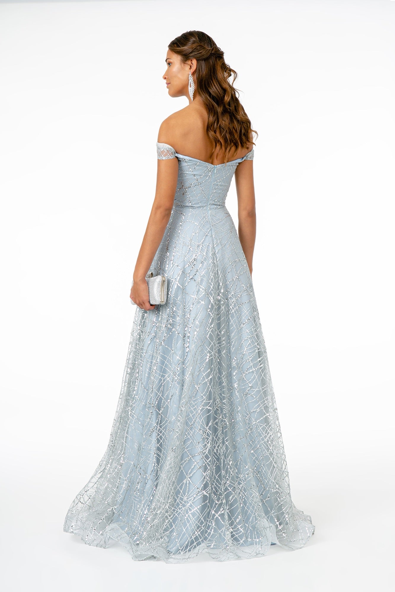 GL 2887 Floral Embroidered Off the Shoulder A-Line Prom Gown with Glitter & Sequin