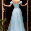 A 3D floral appliqued gown with a sheer boned bead pattern, featuring a tulle a-line bodice and slit leg opening. It is available in fuchsia and yellow, with sizes XS-3XL and updated for 3-19.