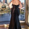 A shimmering tulle A-line prom gown with a sheer floral embroidered bodice and deep V back. The intricate details and flattering silhouette create a romantic and elegant look.