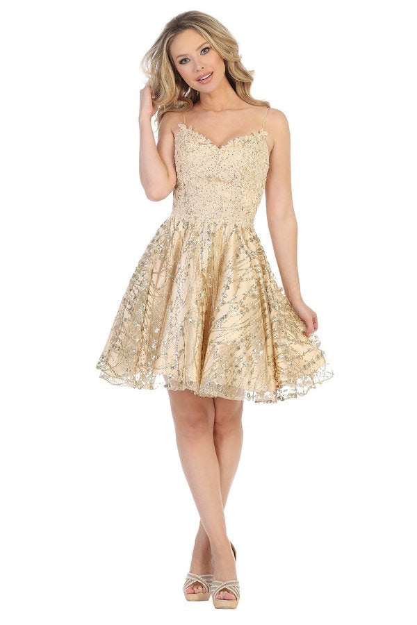 Dazzle in LF 6223, our glitter tulle homecoming dress. Showcasing spaghetti straps and a beaded lace bodice, this dress adds a touch of sparkle to any occasion. Embrace the glitz and glamour with the perfect blend of style and sophistication.