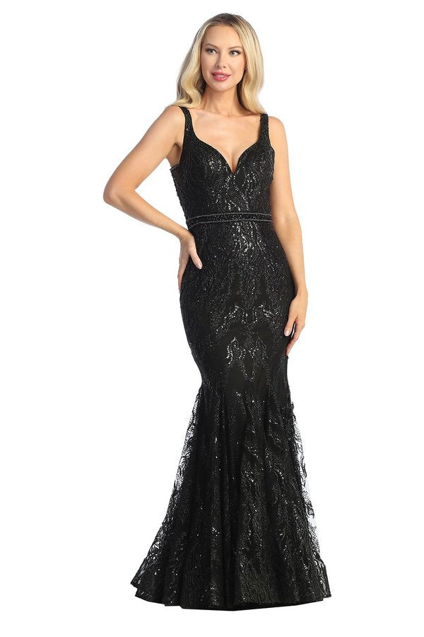 This LF 7552 prom gown features a dazzling glitter pattern that is sure to make you stand out. The v-neck and sheer under arms add a touch of elegance, while the rhinestone belt defines your waist for a flattering fit. Shine all night long with this stunning fit and flare dress. Available in Charcoal, Rose Gold, Black, Emerald and Red Sizes XS-3XL Updated: 3-18