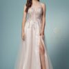 LF 7639 – Glitter Patterned Off the Shoulders Fit & flare Prom Gown with Illusion V-Neck Rhinestone Belt & Straps