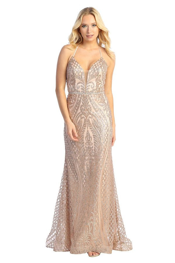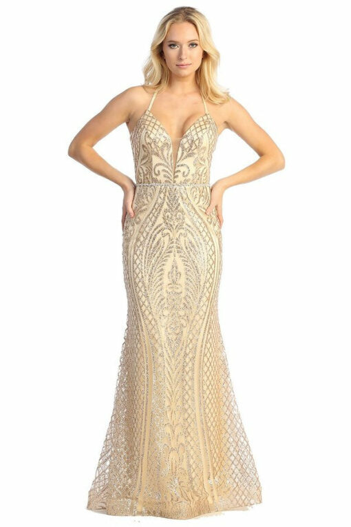 Discover the perfect combination of glamour and elegance with LF 7785 – Art Deco Glitter Print Fit & Flare Prom Gown. Featuring a stunning V-neck and a lace-up corset back, this dress will enhance your figure while the art deco glitter print adds a touch of sparkle. Step into the spotlight and channel your inner prom queen.