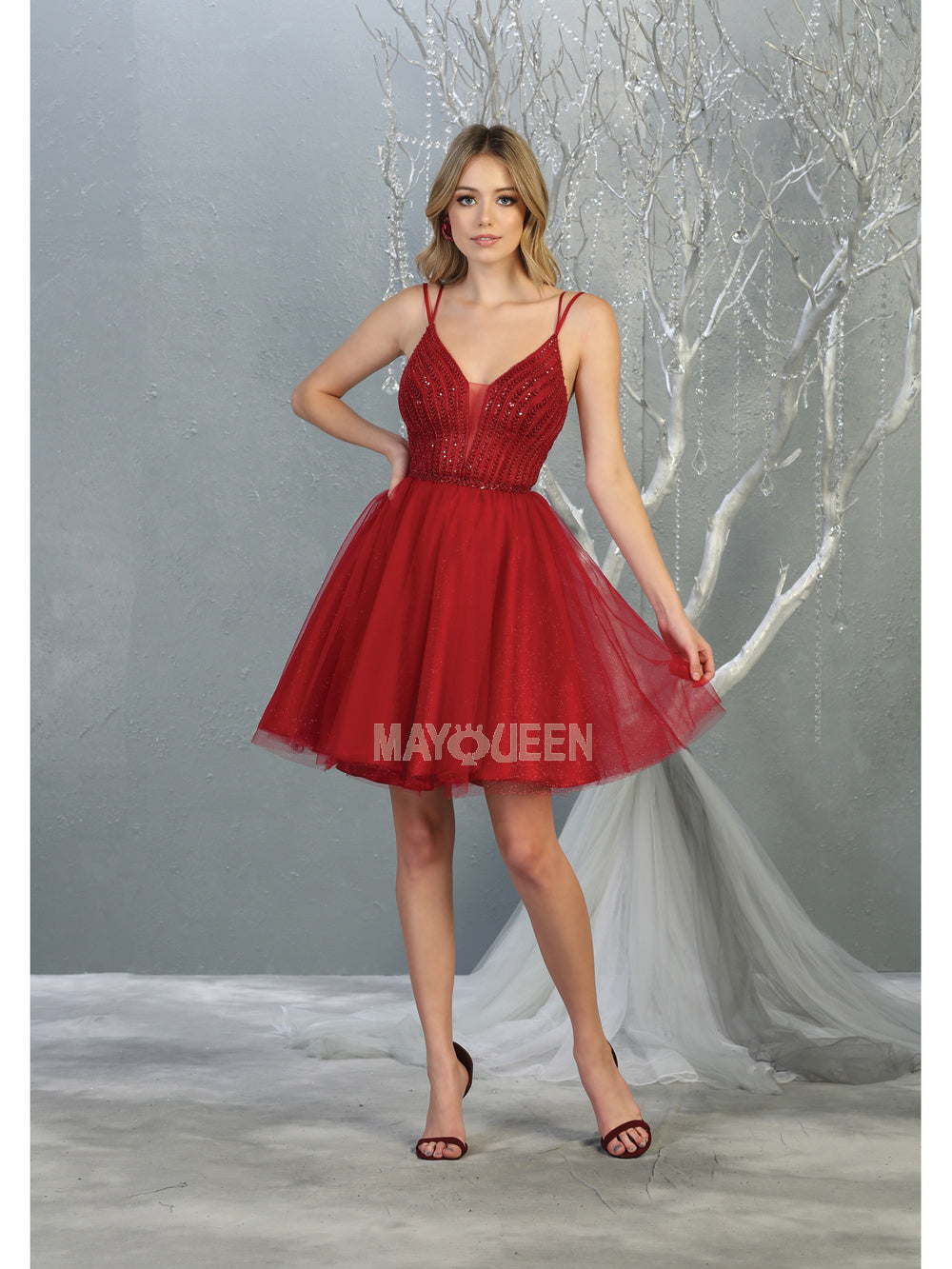 MQ 1800 – Shimmer Tulle A-Line Homecoming Dress with Sheer Beaded Bodice