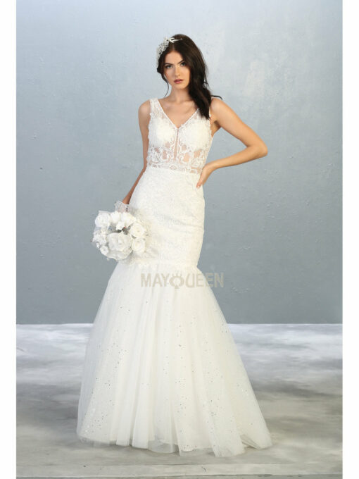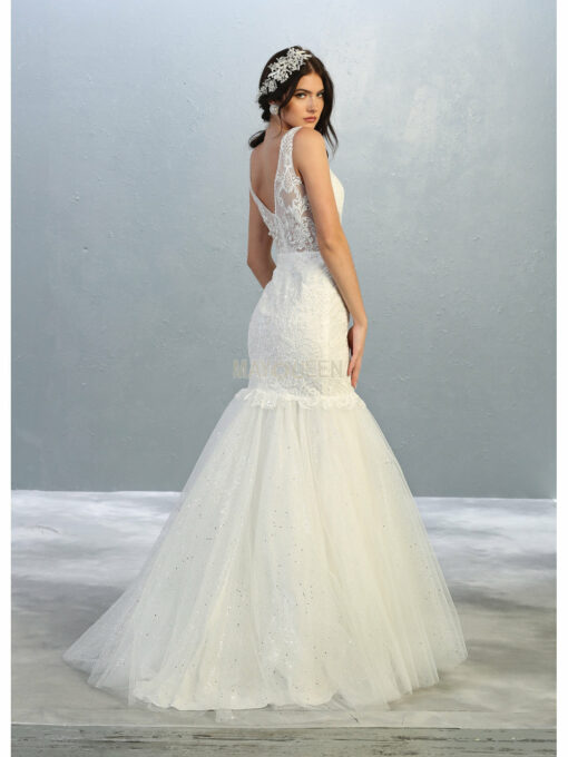 Style Number: 7849 W Lace & Bead Embellished Mermaid Wedding Gown with Illusion Bodice V-Neck & Tulle Skirt. Available in Ivory Sizes 4-20 10-16