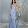 A glitter print gown with a flare design, available in Hunter Green and Champagne sizes (4-20), updated to 10-16.