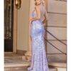 Elegant prom gown with a glitter detailed bodice featuring sheer bone detailing for a sophisticated shape. The skirt is highlighted with a feather accent and leg slit for a glamorous finish. Available in Baby Pink, Fuchsia, Lavender and Red Sizes 2-16. Updated: 9-8
