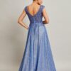 A prom gown with floral sequin patterns and a flattering fit and flare silhouette. The sheer boned bodice adds support and elegance, while the open lace up corset back provides a customizable fit. Available in Lavender Sizes 0-8 Updated: 9-8.