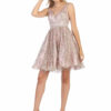 A hot stoned lace-embellished prom gown with a sheer bodice and V-neckline. It features a supportive corset back that ensures an optimal fit. Unique and elegant, this gown is the perfect way to make a statement at any formal event.