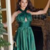 A short, fitted feather-adorned homecoming dress with a sheer v-neck bodice and lace-up corset back. Available in Champagne and Dusty Sage sizes 00-16. Updated: September 27.