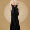 A stunning prom gown with an off-the-shoulder style and flare silhouette, featuring fine sheer sleeves and a rhinestone accented leg slit. Available in Emerald, Light Blue, White, and Black sizes 00-16. Updated on: 11-08