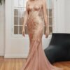 N T1082 – A-Line Boned Bodice Tulle Skirt Prom Gown with Sparkling Floral Applique
