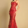 A sophisticated prom gown with a strapless bodice featuring a sheer boned structure and beaded embellishments. The fit and flare silhouette includes a high leg slit for a daring touch, making it ideal for special occasions. Available in Emerald, Fuchsia, and Red Sizes 2-16 Updated on: 11-09